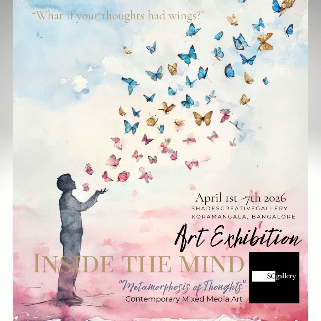 Shades Creative Gallery, Koramangala, Bangalore proudly presents Inside the Mind: Metamorphosis of Thoughts, a thought-provoking contemporary art exhibition exploring the unseen landscapes of human consciousness through surreal and expressive visual narratives.